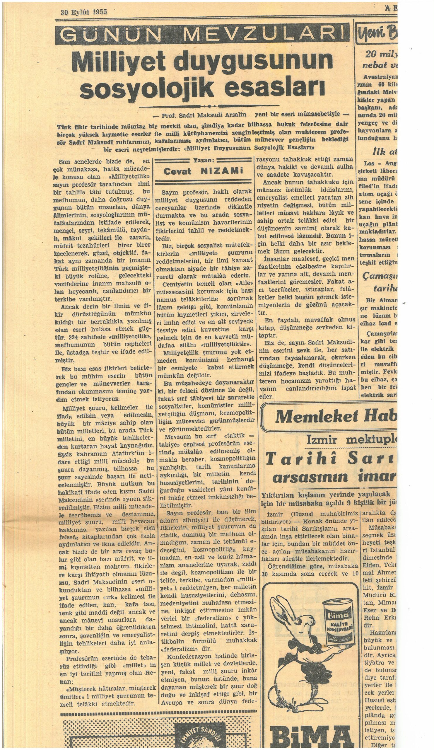 - Nizami, Cevad, “Milliyet Duygusunun Sosyolojik Esasları”, Akşam Gazetesi, 30 Eylül 1955