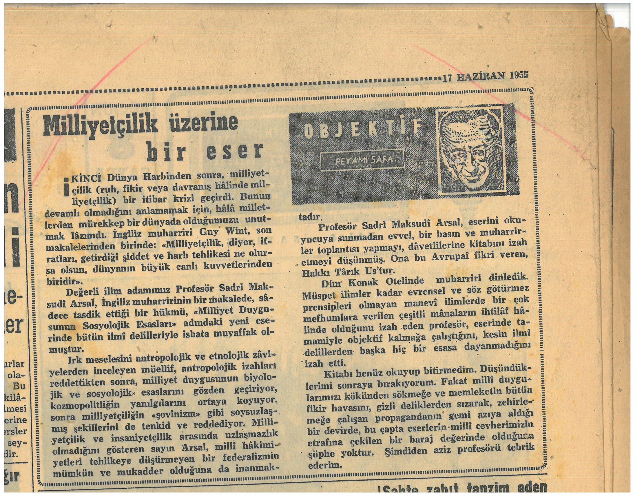 - Safa, Peyami, Milliyetçilik Üzerine Bir Eser, Akşam Gazetesi, 17 Haziran 1955